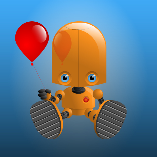 This is a character concept of a cute little orange robot with a red balloon. It can be posed in several ways. You may buy this character from $99 at http://99designs.com/logo-design/store/3230